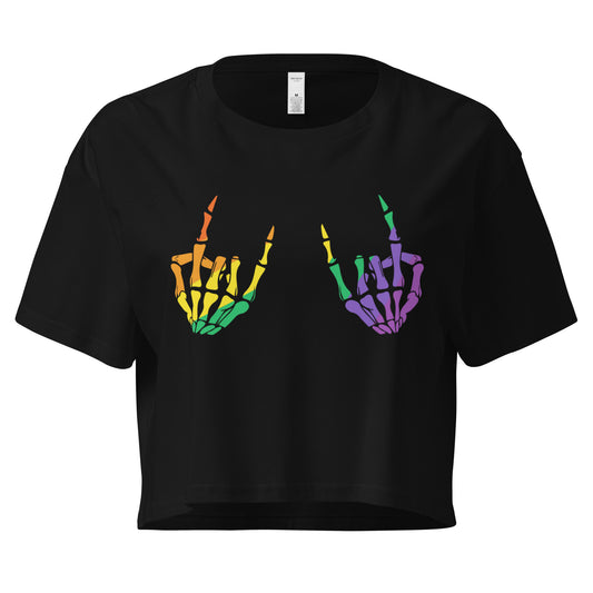 Rock On Skeleton Hands Rainbow Graphic – Flowy Crop Top