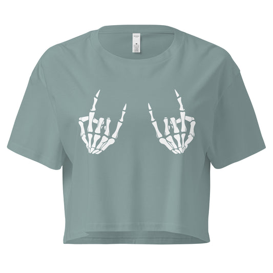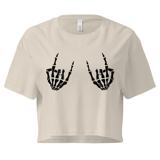 Rock On Skeleton Hands Black Print – Flowy Crop Tee