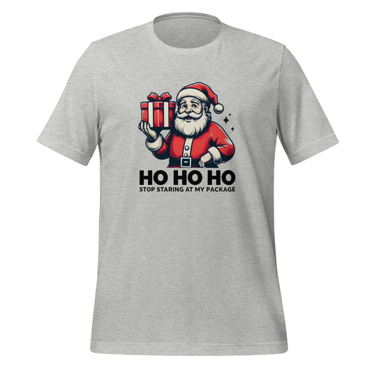 Stop Staring At My Package Christmas Santa Graphic T-Shirt